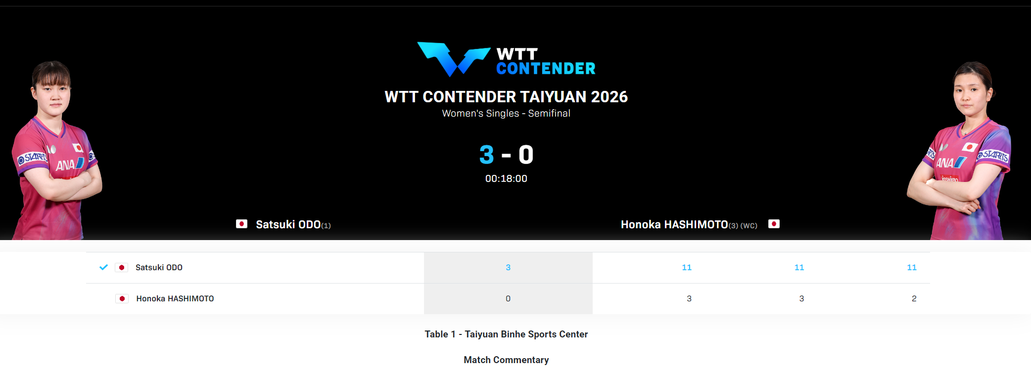 在2026年WTT太原常规挑战赛的女单半决赛中,一场令人瞩目的日乒内战上演。21岁的大藤沙月以绝对优势3-0横扫了有着“日乒最强”之称的桥本帆乃香,三局比分分别为11-3、11-3、11-2,如此悬殊的比分,让桥本帆乃香三局合计仅拿到8分,这场比赛的结果无疑令人大跌眼镜。