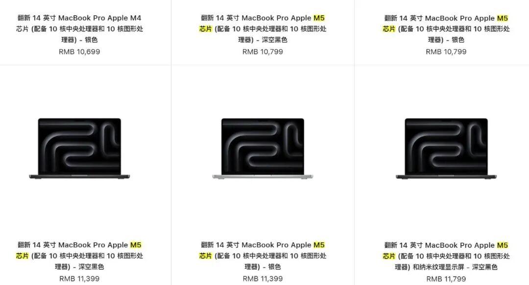 苹果官网突现翻新M5 MacBook Pro:14英寸全系降价,新旧同售引热议