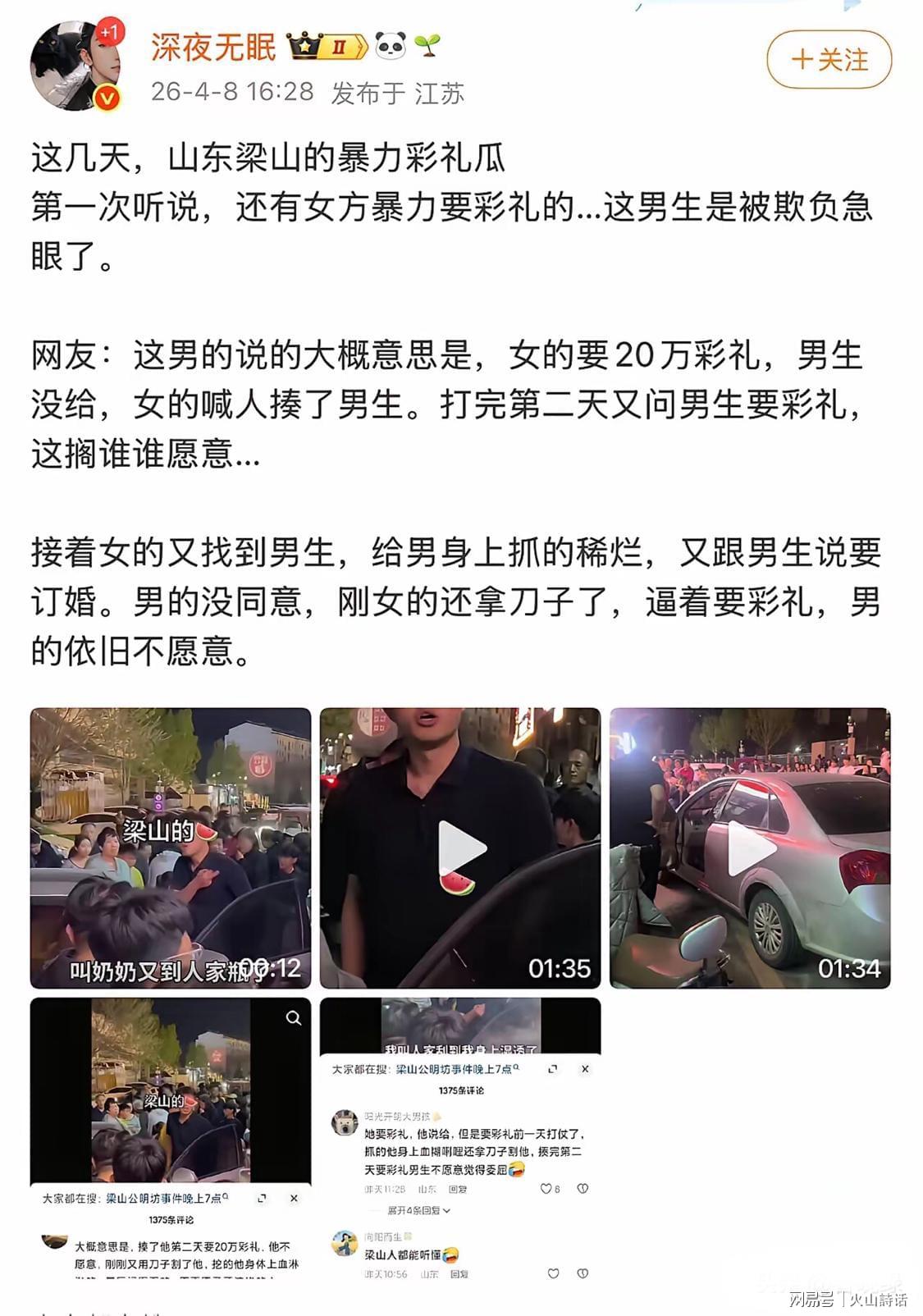 惊爆!山东梁山女子聚众威逼男方支付20万彩礼,引发社会热议