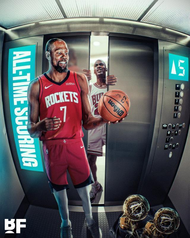 杜兰特生涯得分超乔丹,出手次数更少彰显高效