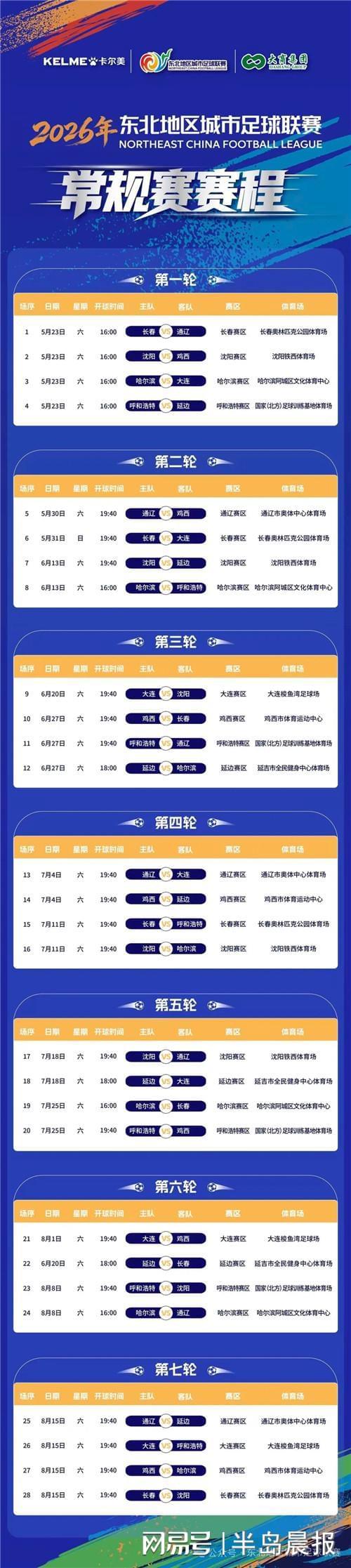 东北超级联赛赛程揭晓:大连队主场激战沈阳队