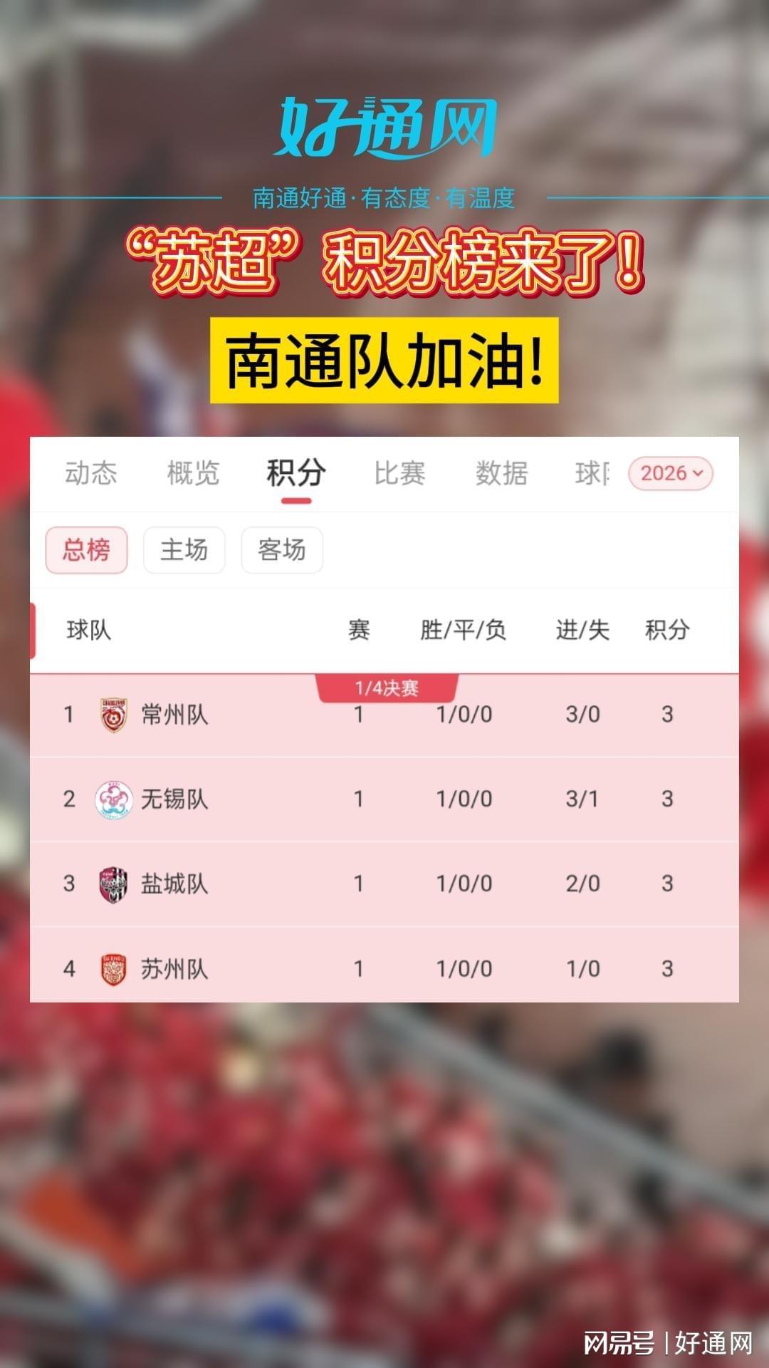 “苏超”积分榜揭晓!南通队蓄势待发,加油!