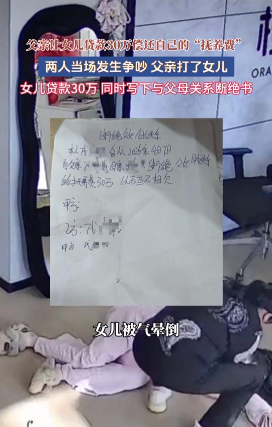 父亲逼迫女儿贷款30万偿还所谓“抚养费” 冲突升级女儿写下断绝关系书