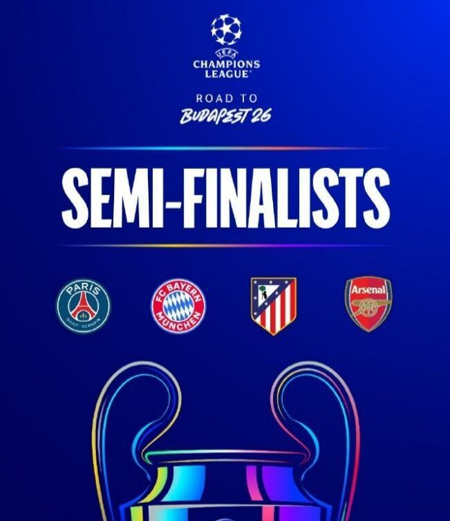 随着这两场比赛的落幕,本赛季欧冠四强格局正式形成:英超(阿森纳)、西甲(皇家马德里虽遭淘汰,但半决赛对手马德里竞技代表西甲)、法甲(巴黎圣日耳曼)和德甲(拜仁慕尼黑)各有一支球队入围。根据赛程安排,半决赛将上演两场跨联赛对决——拜仁与巴黎圣日耳曼的巅峰之战,以及阿森纳与马德里竞技的硬碰硬较量。两回合半决赛将分别于4月29/30日和5月6/7日进行,届时将决出最终晋级决赛的两支球队。