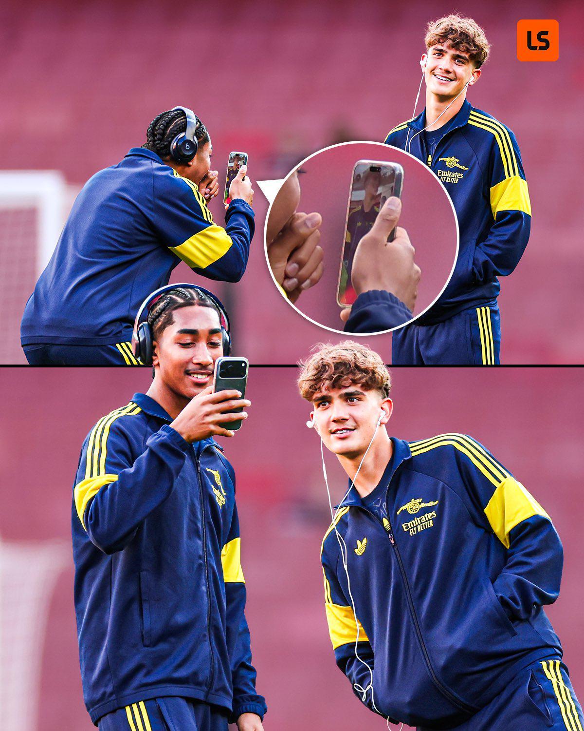 当欧冠四分之一决赛的聚光灯扫过替补席时,镜头捕捉到两个16岁少年正捧着手机笑作一团——阿森纳新星马克斯·道曼和马尔利·萨尔蒙没有紧盯战术板,而是通过FaceTime与场外的朋友实时分享着这场顶级赛事的后台景象。