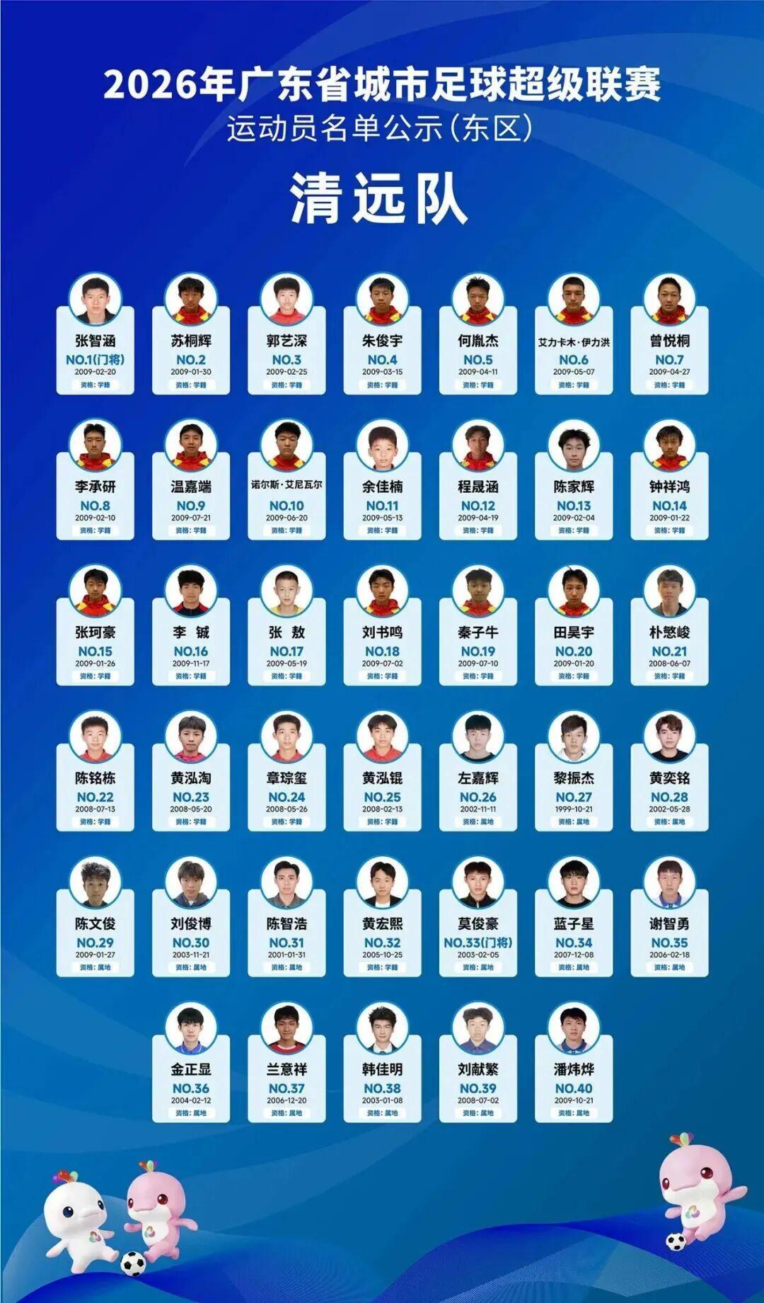 清远队球员名单详情。