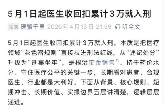这一调整引发了社会的广泛质疑:为何普通从业者,尤其是医务人员,仅因3万元回扣就可能入刑;而掌握公共权力的国家工作人员,却可以在300万元以下来源不明的财产上免于刑事责任?