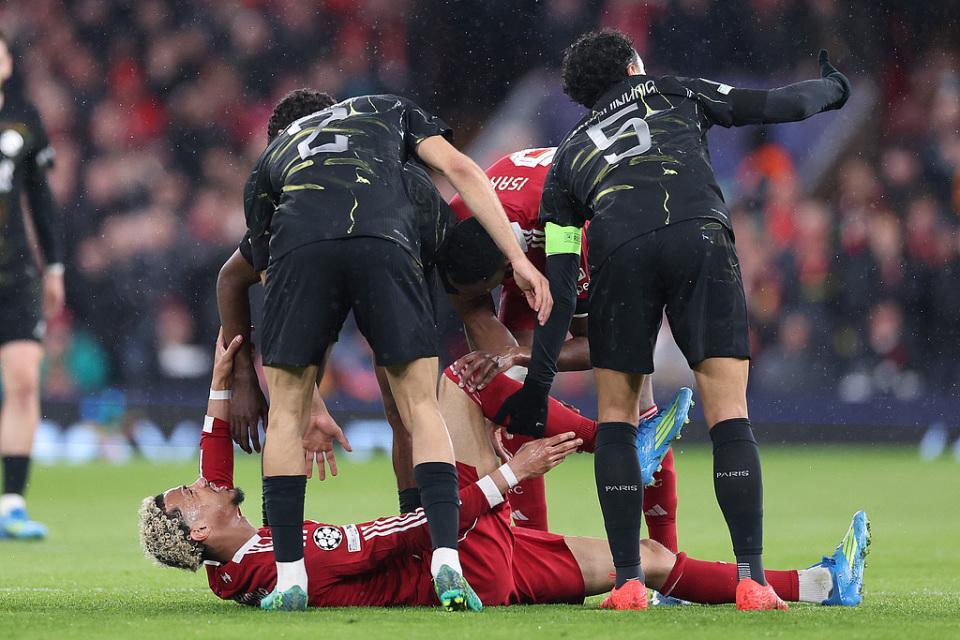 北京时间4月15日凌晨,欧冠1/4决赛次回合上演焦点对决,利物浦坐镇安菲尔德球场0-2负于卫冕冠军巴黎圣日耳曼,两回合总比分0-4惨遭淘汰,连续第二个赛季无缘欧冠四强。这场失利不仅让红军球迷心碎,更在赛后传来令人震惊的噩耗——球队当家前锋埃基蒂克遭遇严重伤病。