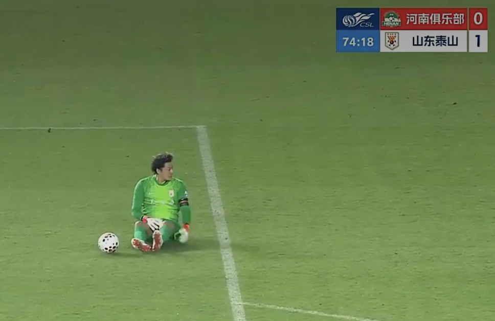 争议瞬间!王大雷开球时听哨倒地 河南球迷集体愤怒辱骂