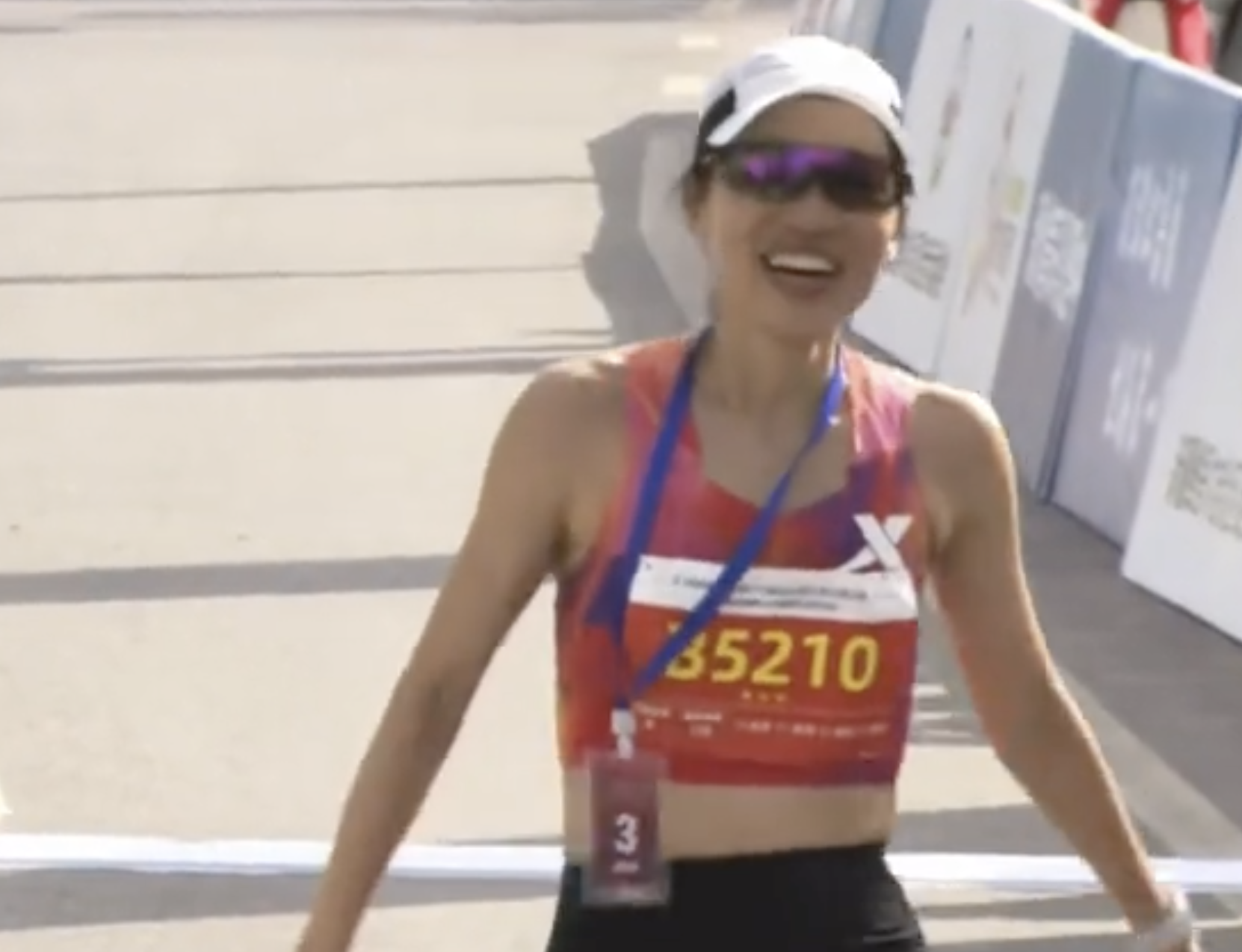 当时间来到1小时16分的时候,张水华才以女子第3名的身份冲过了终点线。面对镜头,张水华并没有表现出太多的沮丧,反而面带微笑,热情地与观众打招呼,展现出了良好的心态和体育精神。