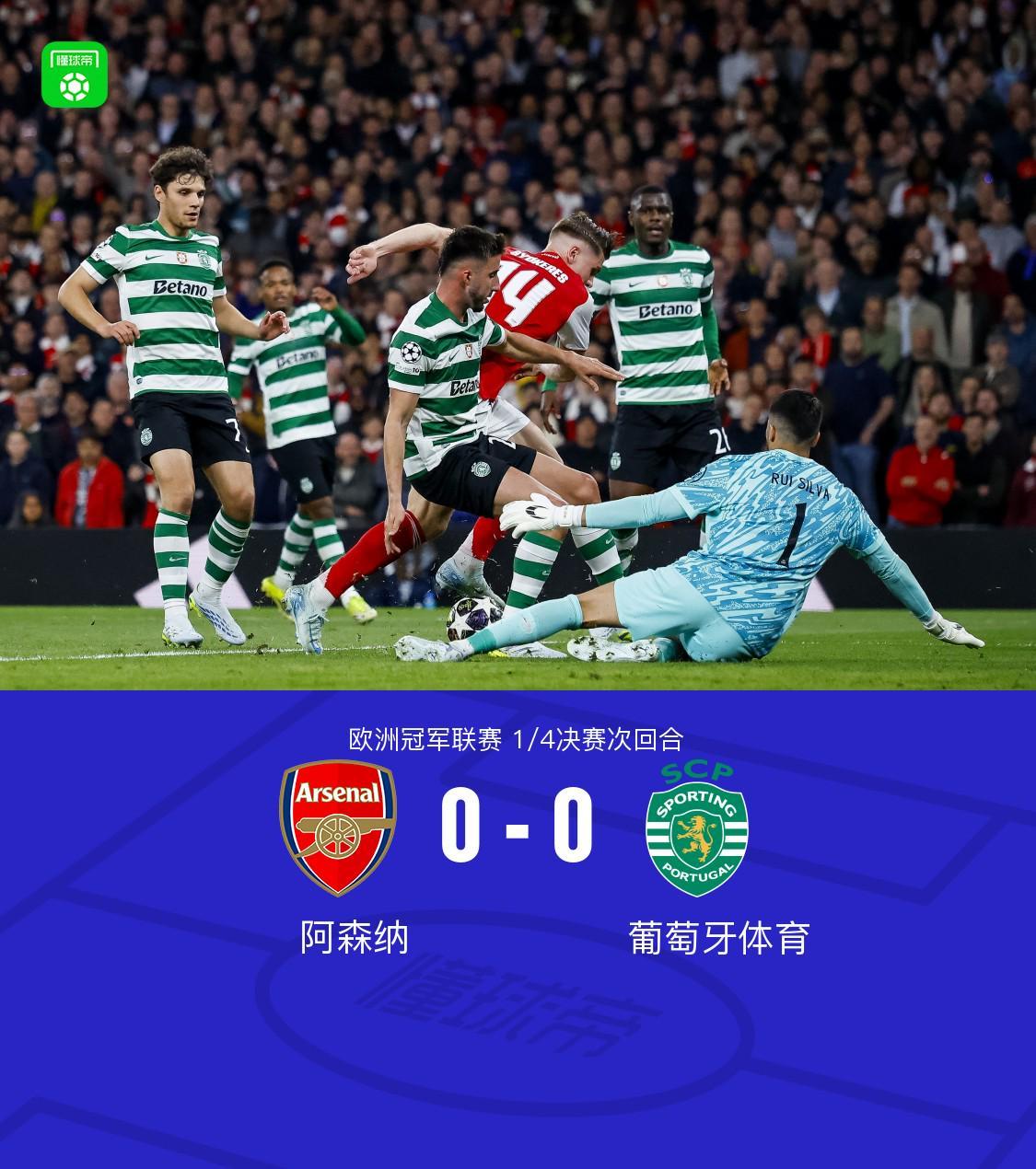 北京时间4月16日凌晨,欧洲冠军联赛1/4决赛次回合展开一场焦点对决,阿森纳坐镇主场迎战葡萄牙体育。经过90分钟的激烈鏖战,双方均未能攻破对方球门,最终比分定格在阿森纳0-0葡萄牙体育。凭借首回合的1-0优势,阿森纳以两回合总比分1-0淘汰对手,成功晋级四强。