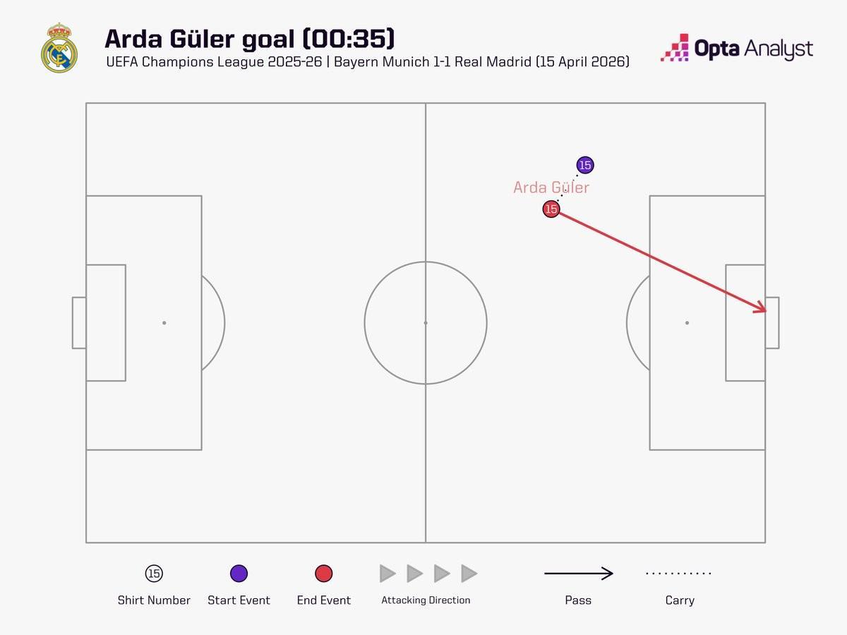 在欧冠1/4决赛次回合的激烈对决中,皇家马德里远赴客场挑战拜仁慕尼黑。比赛刚开场仅仅35秒,居莱尔便抓住机会,成功破门得分,为皇马迅速取得了领先优势。这一进球意义非凡,它是自2016年以来,皇马在欧冠赛场上的最快进球,无疑为这场焦点之战增添了更多的戏剧性。