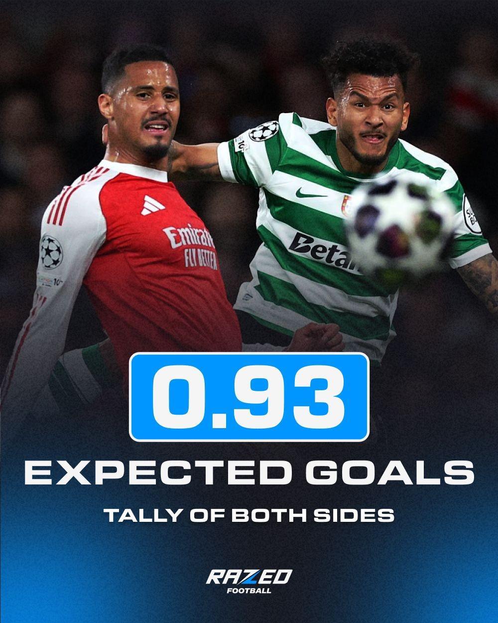 0.93!阿森纳vs葡体创欧冠本季预期进球新低纪录