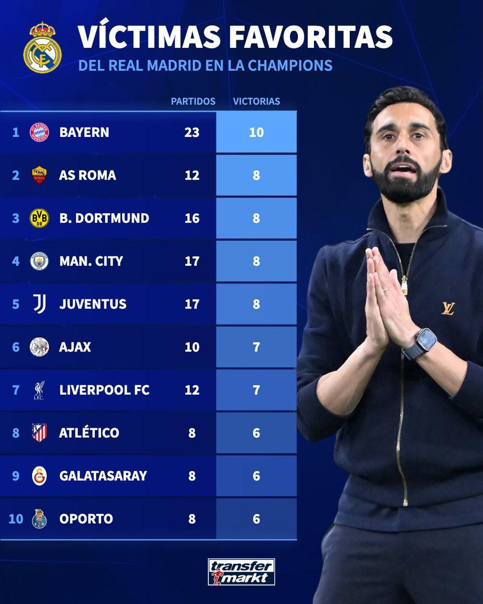 1. 拜仁慕尼黑(23场10胜):作为唯一交手超过20次的对手,两队近十年在欧冠的碰撞产生17个进球,场均进球数达2.1个