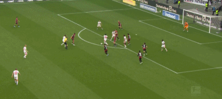 第35分钟,法兰克福迅速扳平!拉松接队友传中后高高跃起,以一记势大力沉的头槌攻门,门将虽全力扑救仍未能阻止皮球入网,比分变为1-1