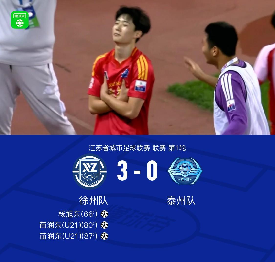 徐州队3-0大胜泰州队,苗润东双响+惊艳一条龙,杨旭东首开纪录