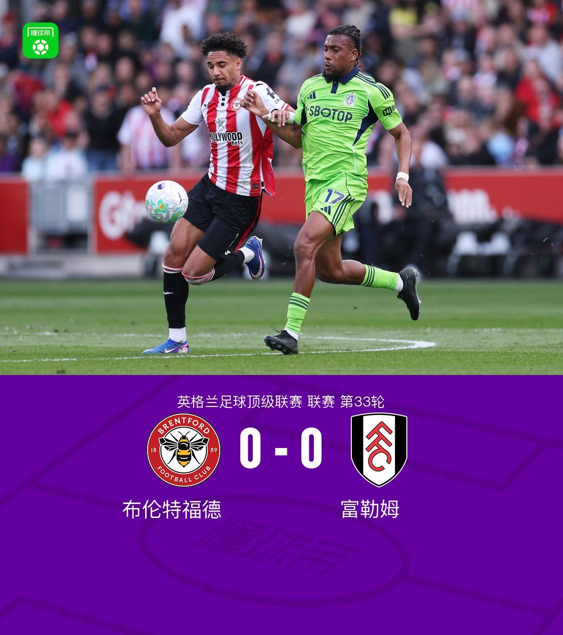北京时间4月18日晚,英格兰足球顶级联赛第33轮迎来一场焦点对决,布伦特福德坐镇主场迎战富勒姆。经过90分钟的激战,双方均未能攻破对方球门,最终以0-0握手言和。