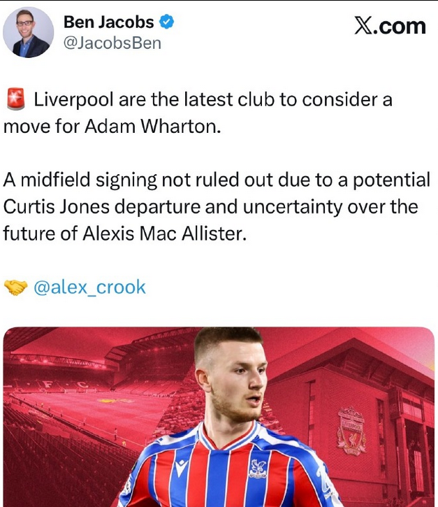 BJ消息:利物浦如今成为了最新一家对亚当·沃顿表现出浓厚兴趣的俱乐部。鉴于球队中场琼斯可能离队,以及麦卡利斯特的未来尚存变数,利物浦管理层正在认真考虑引进一名新的中场球员来增强球队实力。