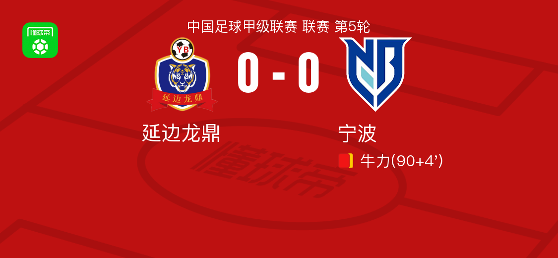北京时间4月18日,中国足球甲级联赛第5轮迎来一场焦点对决,延边龙鼎坐镇主场迎战宁波队。经过90分钟的激战,双方均未能攻破对方球门,最终以0-0握手言和。
