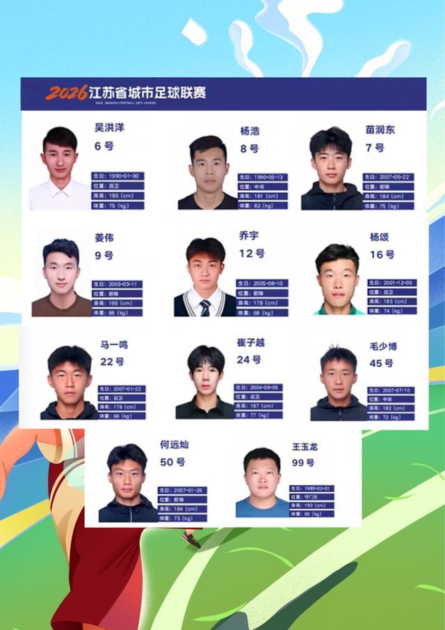 这支12人组成的“师大军团”构成多元:既有7名足球运动、运动训练专业的在校本科生(苗润东、何远灿、马一鸣、毛少博、崔子越、姜伟、乔宇),2名硕士研究生(杨颂、李跃),还有3位体育教育专业往届校友(吴洪洋、杨浩、王玉龙)。特别值得关注的是,2024级新生乔宇在去年苏超第四轮第93分钟上演绝杀进球,帮助球队1:0险胜镇江队;而年仅18岁的苗润东不仅入选U-18国家男子足球队,更以优异表现被江苏师大足球运动专业特招录取。
