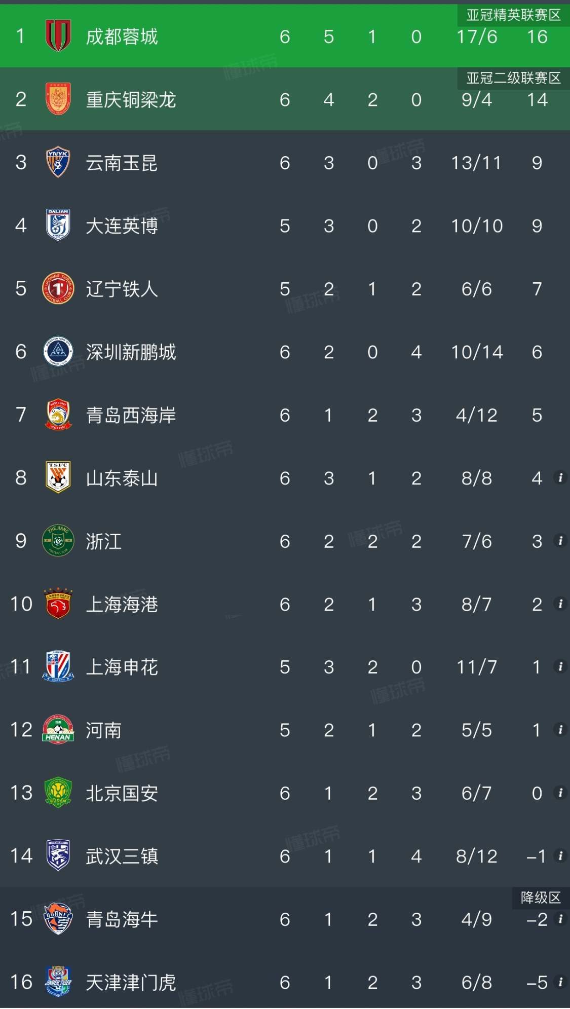 本轮中超其他场次同样精彩纷呈:成都蓉城客场凭借韦林顿的点射1:0险胜武汉三镇,守住了榜首位置;重庆铜梁龙主场2:0击败深圳新鹏城,豪取三连胜稳居第二;青岛海牛四次击中门柱,最终0:0战平西海岸;北京国安客场0:0闷平浙江队,已经连续5轮不胜,仅排第13位。