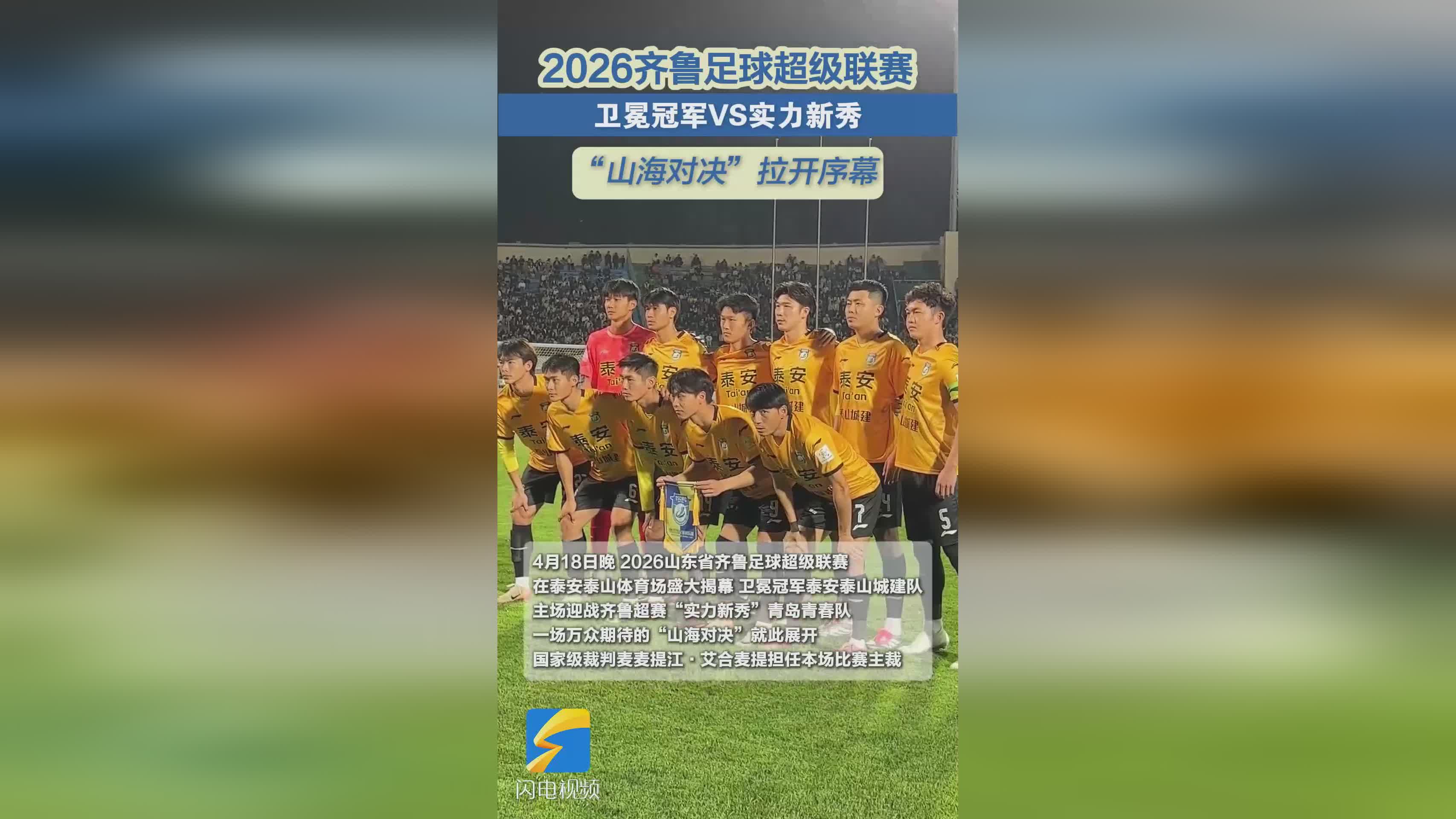 徽声在线·闪电新闻4月18日讯 4月18日夜晚,2026年山东省齐鲁足球超级联赛在泰安泰山体育场正式拉开帷幕。作为上届联赛的冠军,泰安泰山城建队坐镇主场,迎接齐鲁超赛中崭露头角的“实力新锐”青岛青春队的挑战。这场备受瞩目的“山海对决”在万众期待中激情上演。本场比赛由国家级裁判麦麦提江·艾合麦提亲自执哨,确保了比赛的公正性和专业性。