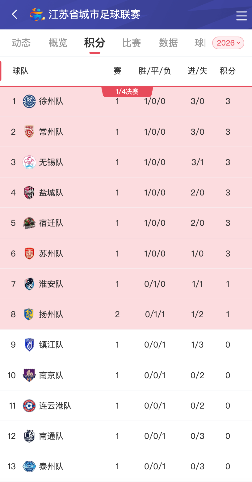 “苏超”积分榜迎来新一轮更新,各队排名或有变动