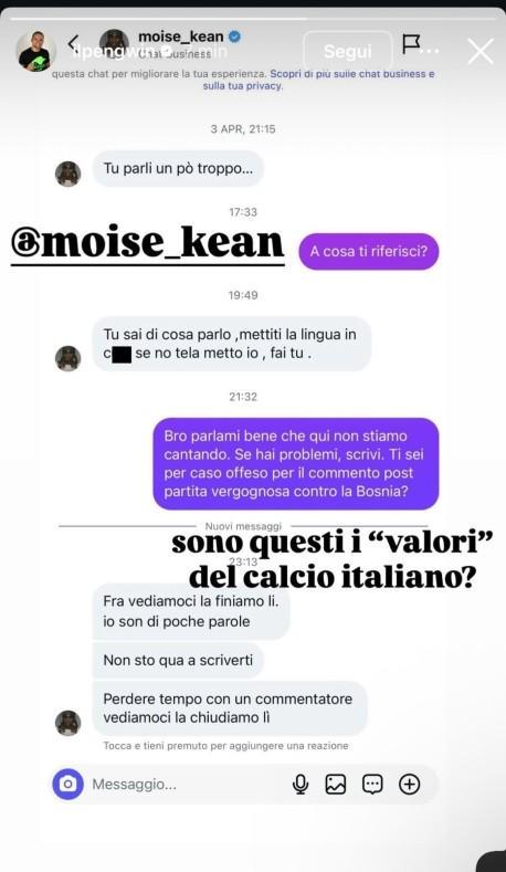 佛罗伦萨队与意大利国家队双料前锋莫伊塞·基恩,近日卷入一场与知名体育博主克里斯蒂安·彭圭因的社交媒体风波。彭圭因通过公开私信截图,揭露了基恩带有威胁性质的言论,并在配文中质问:这难道就是意大利足球所倡导的价值观吗?