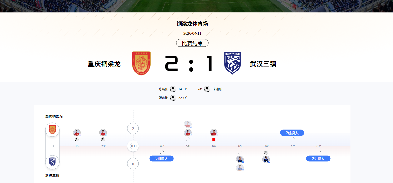 中超第26赛季第五轮焦点战中,升班马重庆铜梁龙在主场迎来了一场硬仗,对手是前中超冠军武汉三镇。经过90分钟的激烈比拼,铜梁龙以2-1的比分力克强敌,成功捍卫了主场荣誉。