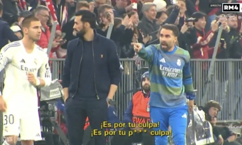 随着卡马文加的下场,皇马在场上陷入了被动,最终连丢两球,惨遭淘汰。比赛结束后,皇马全队情绪失控,纷纷围堵裁判讨要说法。期间,居莱尔因情绪激动被红牌罚下。而转播镜头更是捕捉到了卡瓦哈尔在比赛临近尾声时,对着裁判怒吼:“这都是你的错,全是你XX的错!”