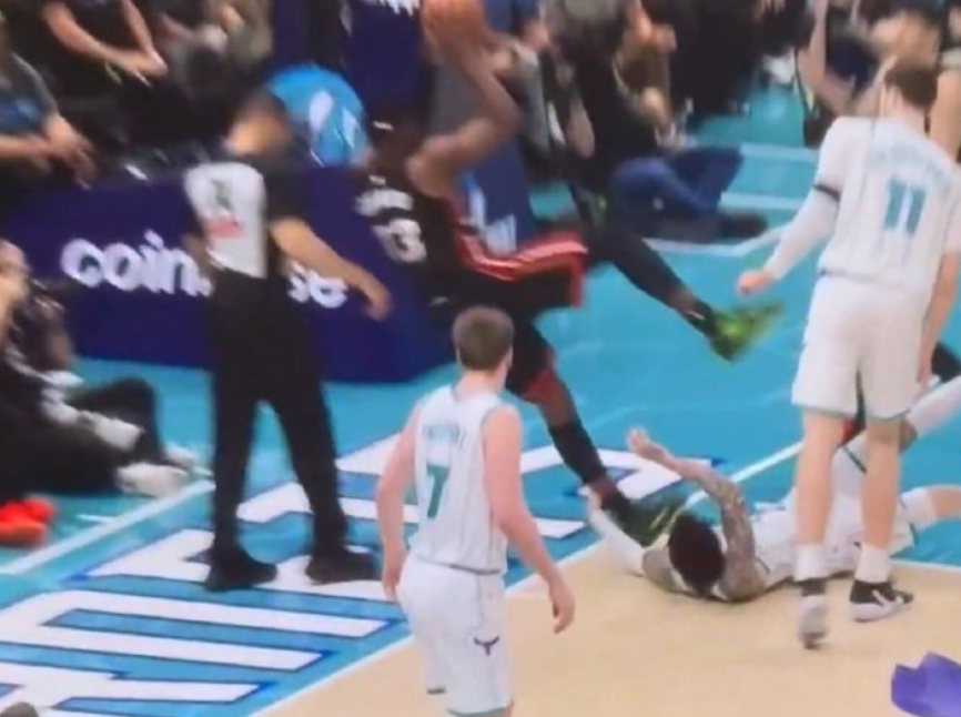 然而,这场比赛并非一帆风顺,其中出现了一个颇具争议的瞬间。拉梅洛-鲍尔在一次摔倒后,不慎绊倒了热火队的核心中锋阿德巴约,导致阿德巴约受伤离场,无法继续为球队贡献力量。这一意外事件无疑成为了比赛的转折点,热火队因此被黄蜂队拖入加时大战,并最终以1分之差惜败。