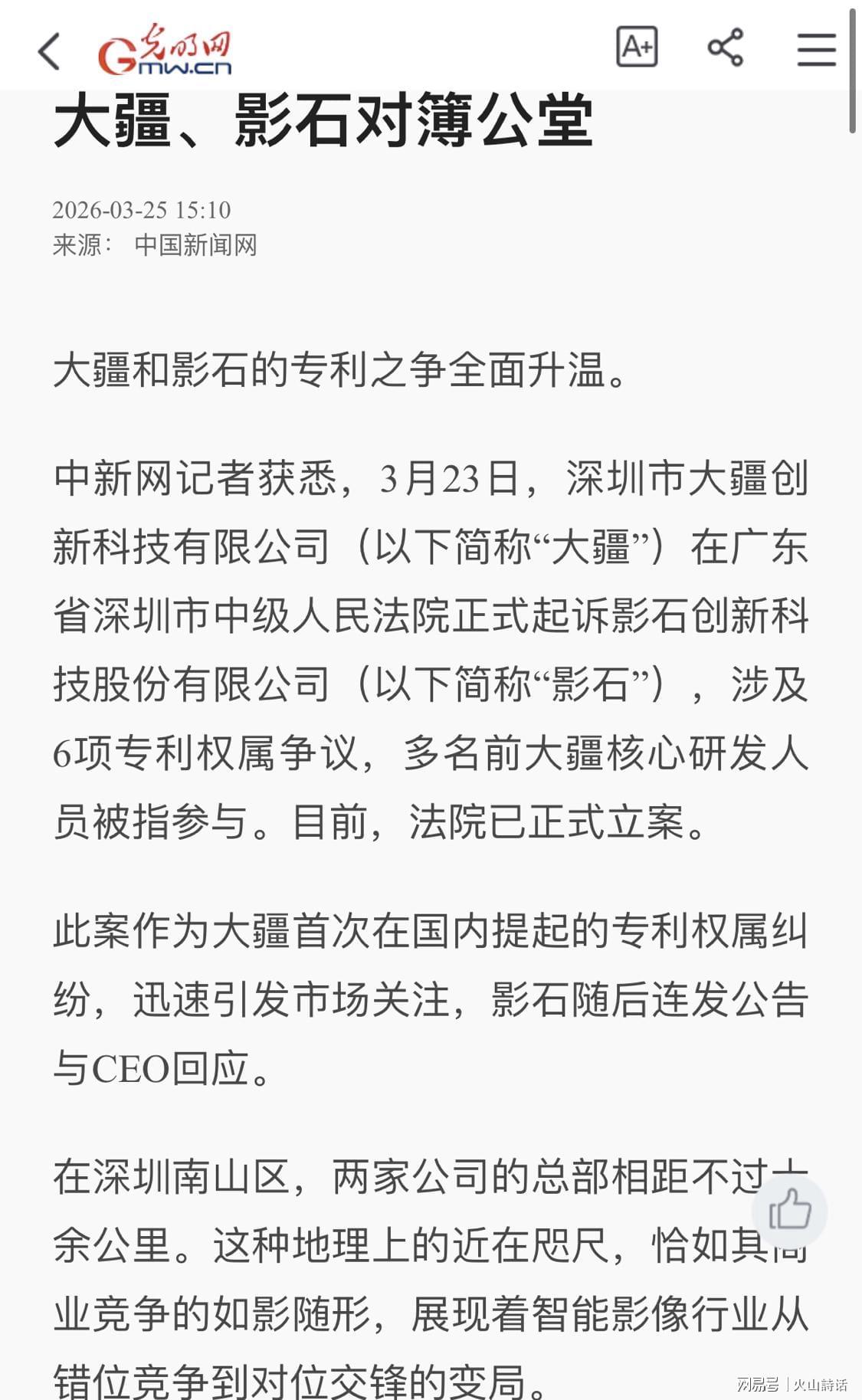 矛盾在2026年3月彻底激化。大疆向影石创新提起了6项核心专利诉讼,直指影石创新的飞控、影像处理等关键技术涉嫌职务发明侵权。与此同时,大疆还依托其在行业内的强大话语权,在供应链端对影石创新施加了巨大压力,展开了全方位的围堵。隐退多年的汪滔也罕见地公开发声,虽然态度温和,但言辞间却暗藏锋芒,足以看出这场同门之争的激烈程度。