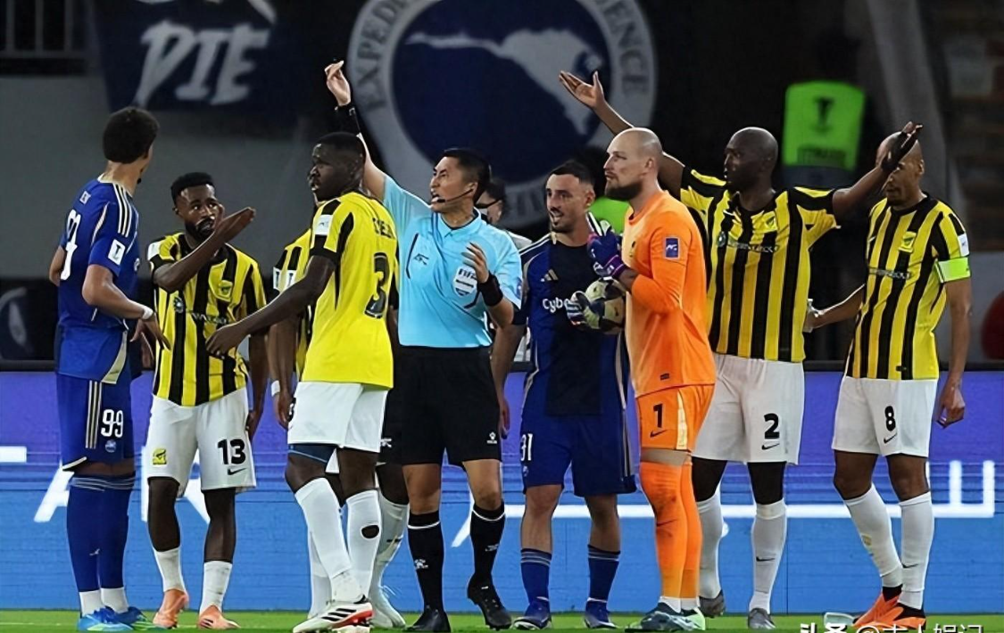 这一判罚让吉达联合全队和球迷仿佛从云端跌入谷底,此后球队也未能再取得进球,最终以0比1的比分止步八强。终场哨声响起,看台下的气氛瞬间变得紧张而混乱,嘘声和骂声此起彼伏,矿泉水瓶如雨点般向场边飞去。其中一个水瓶不偏不倚地砸在了护送马宁离场的安保人员身上,现场情况十分危急,让人不禁为马宁捏一把汗。