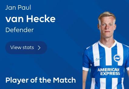范赫克防守固若金汤,布莱顿大胜切尔西他荣膺MVP