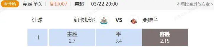 竞足 周日007 英超 纽卡斯尔联VS桑德兰
