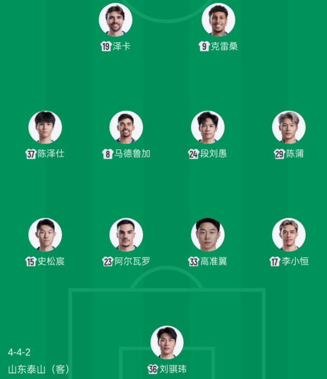 回顾前六轮赛事,泰山队不仅战绩未达预期,更暴露出阵容老化、比赛节奏拖沓等问题。场上球员普遍缺乏冲劲,既未能取得理想成绩,年轻球员的成长空间也受到严重挤压。本轮对阵天津队的比赛,主教练大胆启用新人,首发阵容中刘骐玮(36号)、史松宸(15号)、佩德罗·阿尔瓦罗(23号,外援)、高准翼(33号)等球员构成全新防线,中场由马德鲁加(8号,外援)搭档段刘愚(24号)、陈泽仕(37号),锋线则派出克雷桑·巴塞洛斯(9号,外援)、李小恒(17号)、泽卡(19号,外援)的组合。替补席上还坐着于金永(1号)、孙启航(32号)、杨瑞琦(2号)、彭啸(3号)、谢文能(7号)、李源一(22号)、彭逸翔(42号)等潜力新星,与赛季初相比,阵容年轻化程度显著提升,这一改变让支持者看到希望。