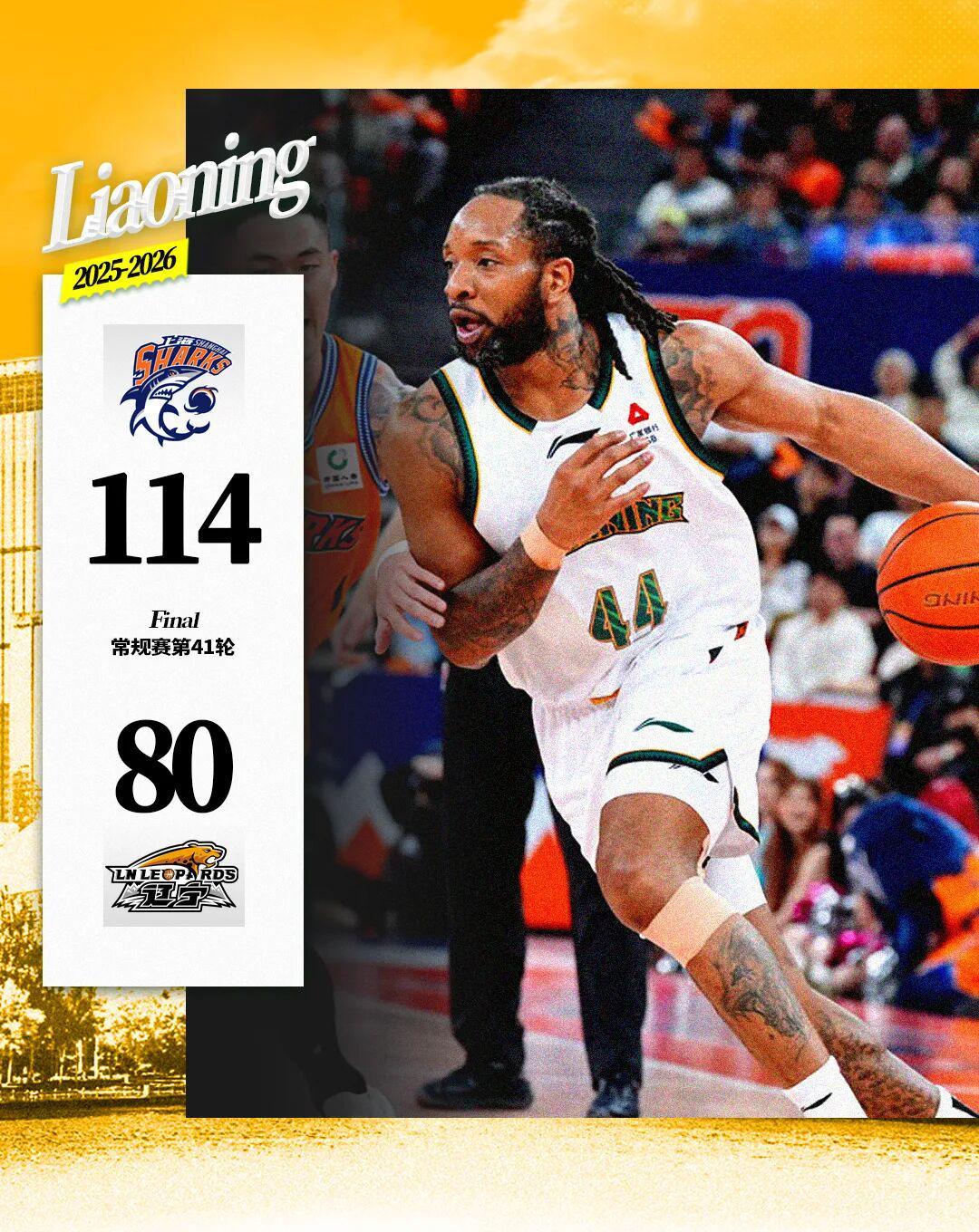 在2025-2026赛季CBA常规赛第四十一轮的激烈角逐中,辽宁本钢队远赴上海体育馆,挑战实力强劲的上海久事队。经过四节鏖战,最终辽宁本钢以80:114的比分不敌上海久事,遗憾告负。