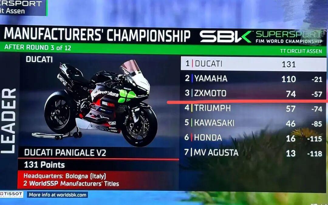 张雪机车制造商积分跃居第三,紧追杜卡迪与雅马哈