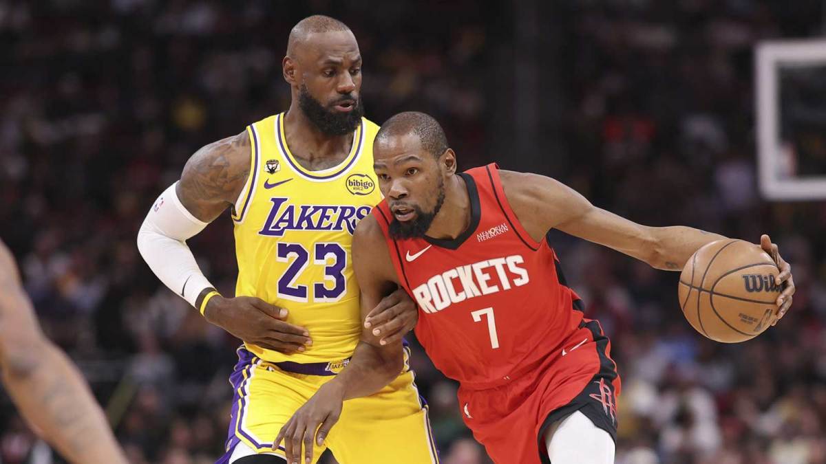 随着湖人(西部第7)与火箭(西部第5)的季后赛首轮对决即将打响,这场詹姆斯与杜兰特的第6次季后赛交锋引发全美关注。ESPN统计显示,两人此前5次季后赛相遇,詹姆斯所在球队取得3胜2负优势。