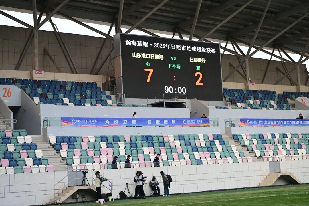 3月21日下午,2026年日照市足球超级联赛(简称“日超联赛”)在日照国际足球中心盛大开幕,揭幕战在工会组率先打响。山东港口日照港队与日照银行队展开了一场扣人心弦的进球盛宴。经过激烈角逐,实力强劲的山东港口日照港队以7:2的压倒性优势战胜日照银行队,成功斩获本次赛事的首场胜利。