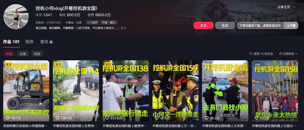 不过,小何已经拥有800多万粉丝了,光视频收入应该也不少,自己买台二十多万的挖机应该也不是难事。