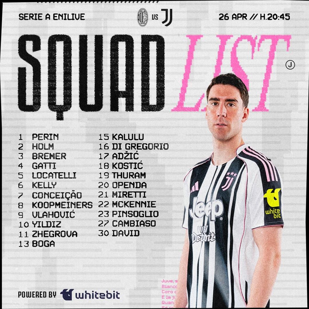尤文客战米兰大名单揭晓:弗拉霍维奇佩林伤愈回归,伊尔迪兹入选引期待