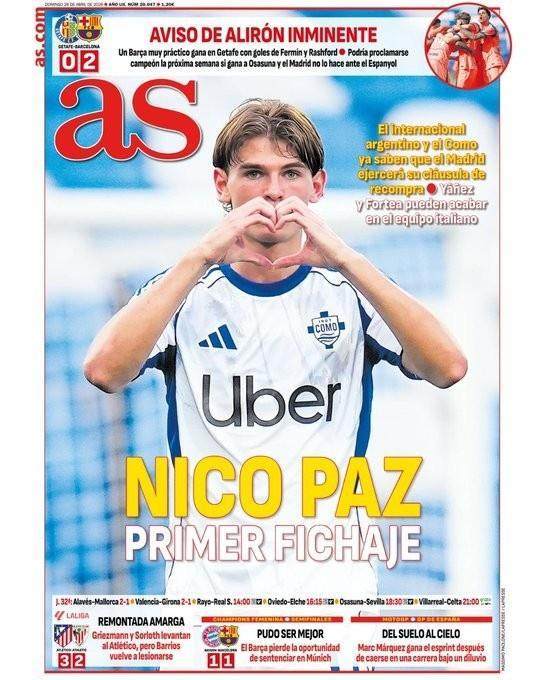 本周日,西班牙权威体育媒体《阿斯》报以醒目的头版头条位置,聚焦了阿根廷中场新星尼科·帕斯可能重返皇家马德里的热门话题。据可靠消息,皇马管理层已下定决心,将激活这位出自自家体育城青训体系的年轻才俊的回购条款。而在科莫队历练有成的帕斯,似乎终于迎来了在伯纳乌球场大放异彩的良机。