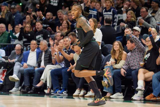 本场比赛,森林狼队中表现最为抢眼的无疑是悍将道苏姆。他全场出战42分钟,投篮命中率惊人,17次出手命中13球,三分球更是5投全中,罚球也无一失手,12罚12中,独得43分,同时还贡献了4个篮板、1次助攻和1次封盖的全面数据。道苏姆的出色发挥,不仅弥补了迪文琴佐和爱德华兹因伤缺阵带来的损失,更是成为了球队取胜的关键因素。