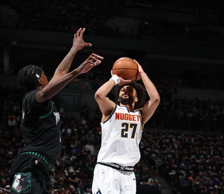 更为致命的是,掘金核心球员表现低迷。约基奇虽得到27分15篮板,但26次出手仅命中7次,命中率低至26.9%,这无疑是他季后赛生涯单场最低命中率纪录;穆雷同样状态不佳,17投5中,三分线外更是5投0中。双核合计43投仅12中,进攻体系彻底失灵。颇为讽刺的是,约基奇季后赛生涯仅有两场命中率低于30%,而这两场的对手均为森林狼——2023年首轮面对戈贝尔时,他29投仅8中,如今26.9%的命中率更是“刷新”了这一尴尬纪录。