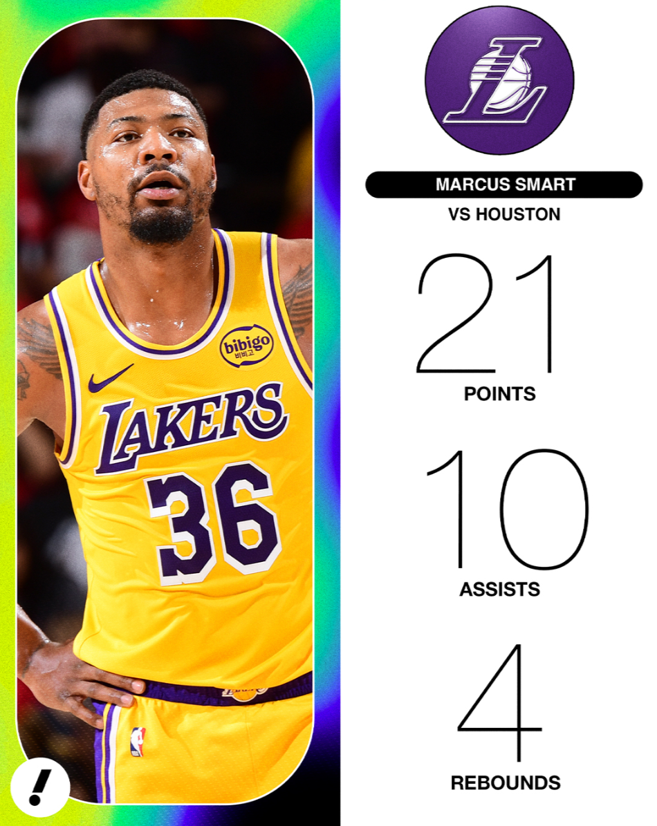 此役,斯玛特成为了自1991年迈克尔-乔丹以来,首位在季后赛中砍下20+10+5断+2帽的球员。同时,他也是湖人队史首位连续两场比赛拿到20分+5抢断的球员,以及湖人队史第二位单场贡献21+10+5抢断的球员,与魔术师约翰逊比肩。拿着500万年薪的斯玛特,竟然能够比肩篮球之神迈克尔-乔丹,这无疑是对他实力的最好证明。
