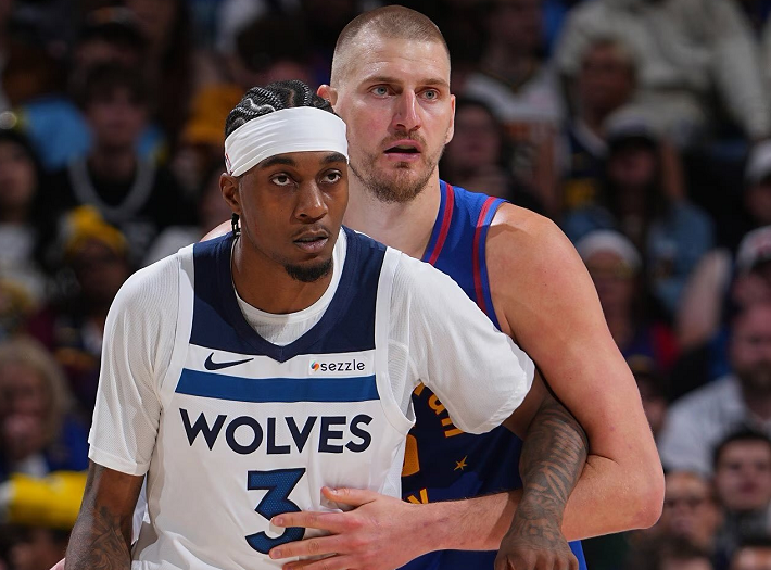 全场比赛,约基奇出战40分钟,22投8中(三分球3中0),罚球8中8,贡献了24分+15篮板+9助攻+3抢断+1盖帽的全面数据,但也有4次失误,场上正负值为-12。约基奇在三分线外屡投不中,森林狼队则趁机将防线收缩,使得约基奇在内线面对戈贝尔、兰德尔和里德组成的铁桶阵时,显得力不从心,杀敌一千自损八百,场面略显悲壮。比赛最后时刻,掘金队败局已定,森林狼队的麦丹上空篮得分,约基奇暴怒冲上前去与麦丹理论,双方随即爆发大规模冲突,约基奇和麦丹双双被驱逐出场。