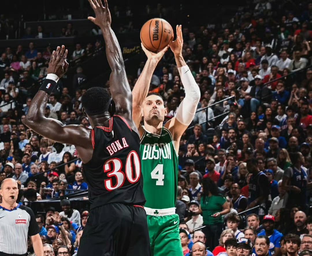 本场比赛,双方在首发阵容上均有所调整。76人派出了马克西、乔治、乌布雷、博纳和埃奇库姆的组合,而凯尔特人则选择了塔图姆、布朗、怀特、豪瑟和克塔。比赛伊始,凯尔特人便凭借布朗的节奏变换上篮率先得分,埃奇库姆则以一记闪电般的突破飞身抛投为76人打开局面。随后,乌布雷的底角三分、博纳的篮下强起补扣以及普理查德的定点三分相继命中,双方比分紧咬。马克西不甘示弱,追身大号三分予以回应,布朗的正面干拔三分也紧随其后。首节比赛,两队进攻效率均保持较高水平,凯尔特人以微弱优势领先结束首节。