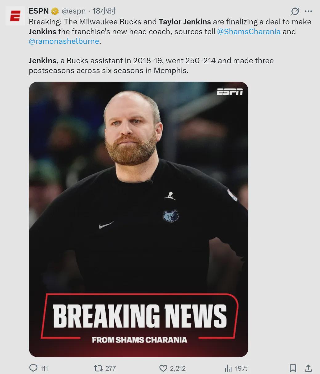 雄鹿官宣新帅!詹金斯接棒里弗斯,字母哥态度成关键变量