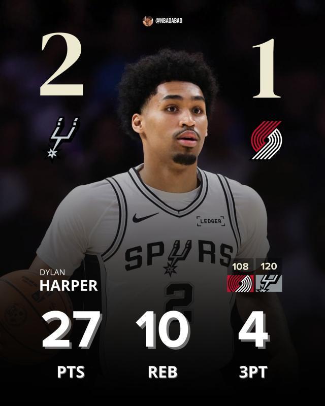 北京时间4月25日,NBA季后赛激战正酣,波特兰开拓者队在主场以108比120的比分不敌来访的圣安东尼奥马刺队,系列赛总比分因此变为1比2,开拓者队暂时落后。值得一提的是,本场比赛马刺队的核心球员文班亚马因故未能出战,然而,新秀迪伦·哈珀却在下半场迎来爆发,他凭借出色的表现带领马刺队完成了15分的惊天逆转,最终赢得了这场关键之战。而中国球员杨瀚森也在比赛的最后时刻获得了登场机会,并成功抢下一个后场篮板球,为球队贡献了自己的力量。